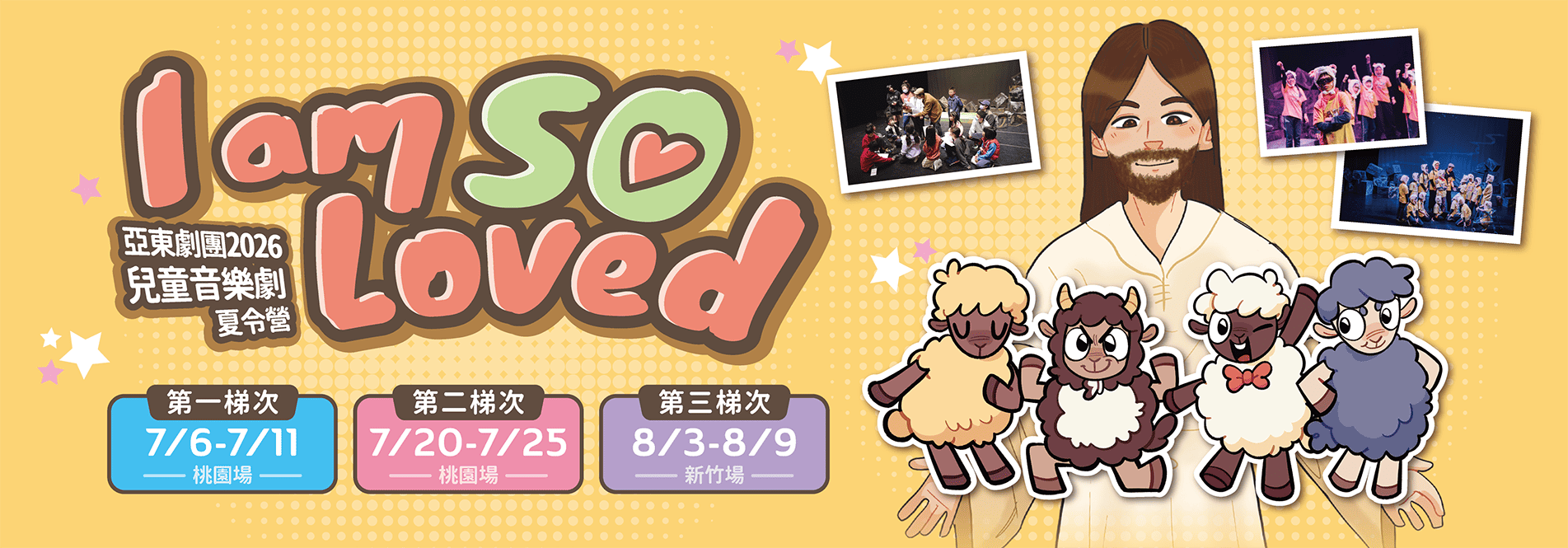最新消息 其他消息 2026/3/15 2026315 【 I am So Loved 】亞東劇團2026兒童音樂劇夏令營開跑了! 巡迴演出 2026/2/27 2026227 亞東劇團3-4月行程 巡迴演出 2026/1/30 2026130 亞東劇團2月行程 其他消息 2026/2/13 2026213 【亞東劇團春節休假公告】 代禱通訊 2026/1/31 2026131 2026北美行程代禱信 熱門活動 精彩影片